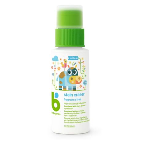 Babyganics stain & odor remover spray. It gets out stains like a beast. Rub applicator tip in a circular motion to remove stain. Chlorine parabens phthalates sulfates fragrances or dyes Never tested on.