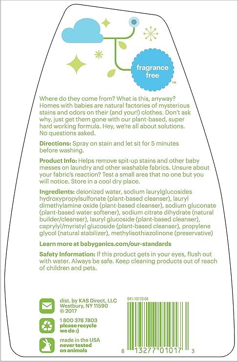 I can definitely say that this stain and odor remover works in getting week old stains out but it just sucks that the spray is more of a gel so when you spray it on the clothes it kind of gets everywhere. Store in a cool dry place. Babyganics Stain Odor Remover Spray Fragrance Free 32oz Spray Bottle Pack of 3 Retail Price.