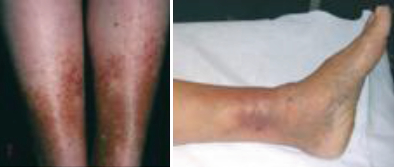 Rubor peripheral vascular disease. Blistering of skin and ulceration Frank dry gangrene Guttering of veins Burgers angle of Vascular insufficiency. Pale and cool limb Loss of hair brittle nails Weak or absent peripheral pulses. There are few disease processes as variable in location presentation and severity as those seen in the vasculopath.