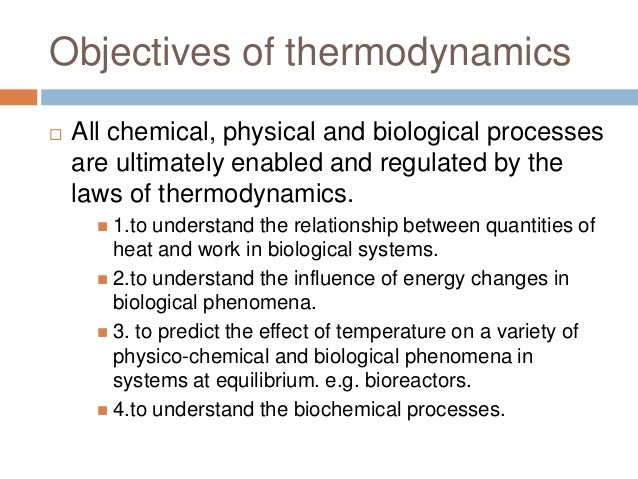 Application of thermodynamics in biological system. These principles govern the chemical processes metabolism in all biological organisms. Enthalpies for Different Types of Reactions. MeSH terms Biochemical Phenomena Models Chemical Thermodynamics.