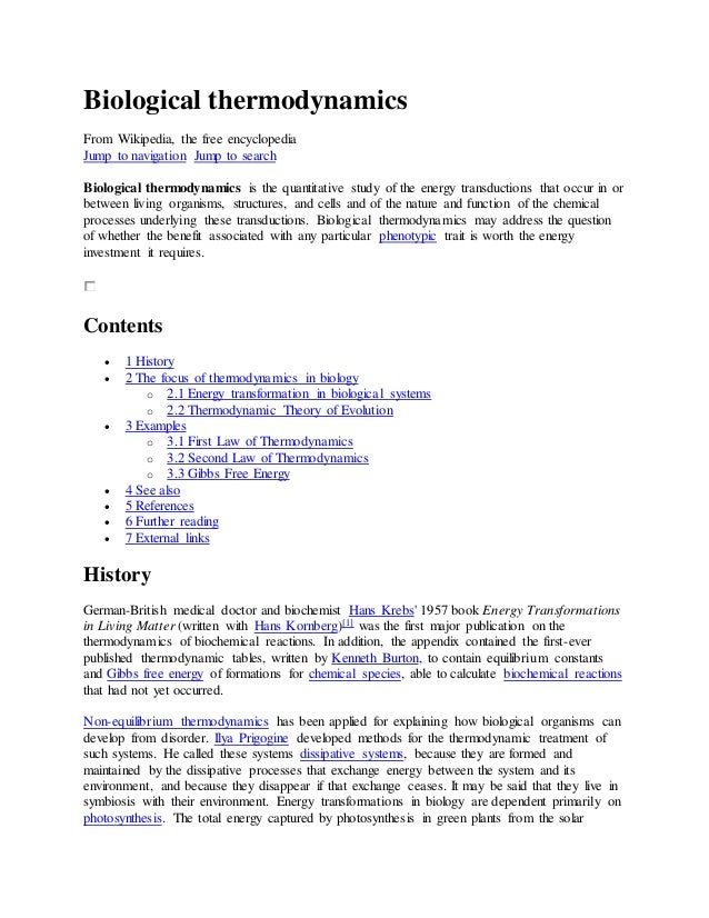 It may change from one form to another but the energy in a closed system remains constant. MeSH terms Biochemical Phenomena Models Chemical Thermodynamics. PowToon is a free. Applications of Thermodynamics to Biological Systems Methods Biochem Anal. Biological thermodynamics is the quantitative study of the energy transductions that occur in or between living organisms structures and cells and of the nature and function of the chemical processes underlying these transductions. However the study of thermodynamics and its laws helped us to increase efficiency and also build more applications. The Principle of Conservation of Energy.