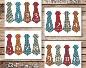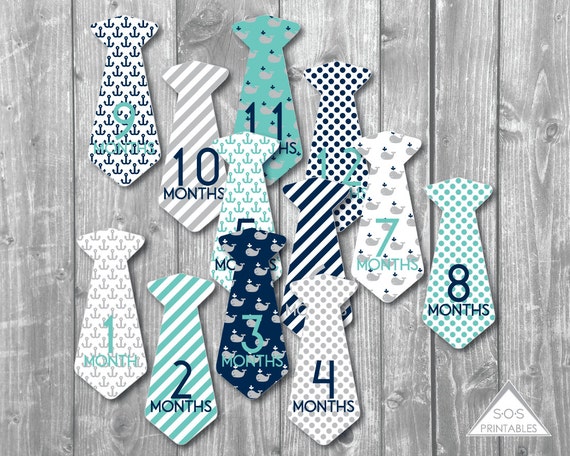 Current Price 995 9. Baby Milestone Tie Stickers Baby Boy Monthly Milestone Nautical Whale Milestones Printable Sticker 12 month tie stickers Navy and Blue 12 Styles Prints 4 stickers per page Each tie measures 6 inches long For best results print on full page sticker sheets and cut out. Make Your Own Baby Milestone and Month Stickers with PicMonkey.