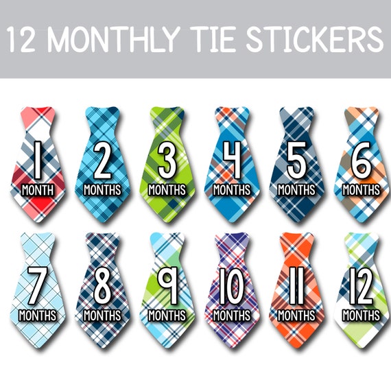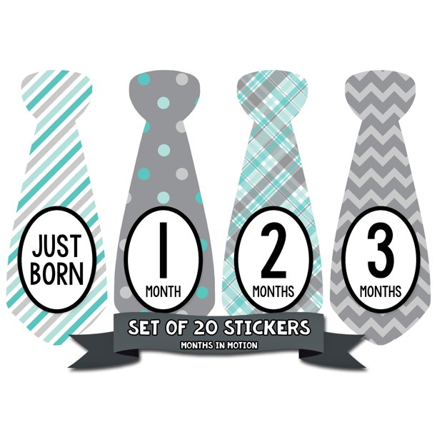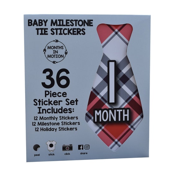 Buy Months in Motion Baby Monthly Necktie Stickers - Baby Milestone Tie Stickers - Newborn Boy Stickers - Month Stickers for Baby Boy - Baby Boy Stickers - Newborn Monthly Milestone Stickers - Set of 20. Formatted for 8. They can be worn on anything for a quick photo. Check out our baby milestone tie selection for the very best in unique or custom handmade pieces from our shops. All stickers are precut so all you have to do is peel and place the sticker on any outfit. Make Your Own Baby Milestone and Month Stickers with PicMonkey. Months in Motion first year baby month and milestone tie stickers are a great way to document your babyâ s monthly growth in their first year of life.