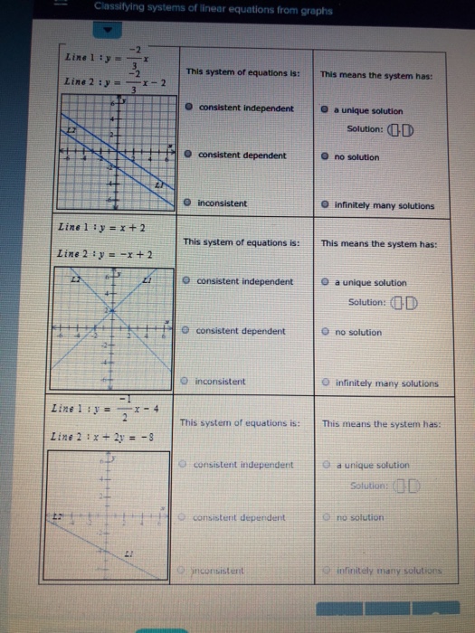 Improve your math knowledge with free questions in Classify a system of equations by graphing and thousands of other math skills. 6x 3y 9. Solving Systems of Three Equations in Three Variables. We can find examples in biology economics and electronics to cite. Systems of Equations Calculator is a calculator that solves systems of equations step-by-step. Systems of linear equations lie at the heart of linear algebra and they are used to solve practical problems in many fields of study. It tracks your skill level as you tackle progressively more difficult questions.
