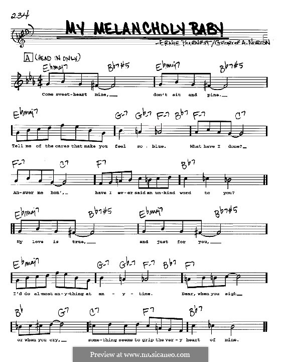 Norton Phillip Keveren Maybelle Watson Ernie Burnett. Printable sheet music file 1 copy 1 pages ID. My Melancholy Baby Sheet Music.