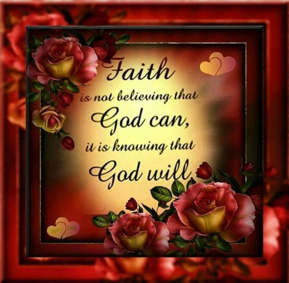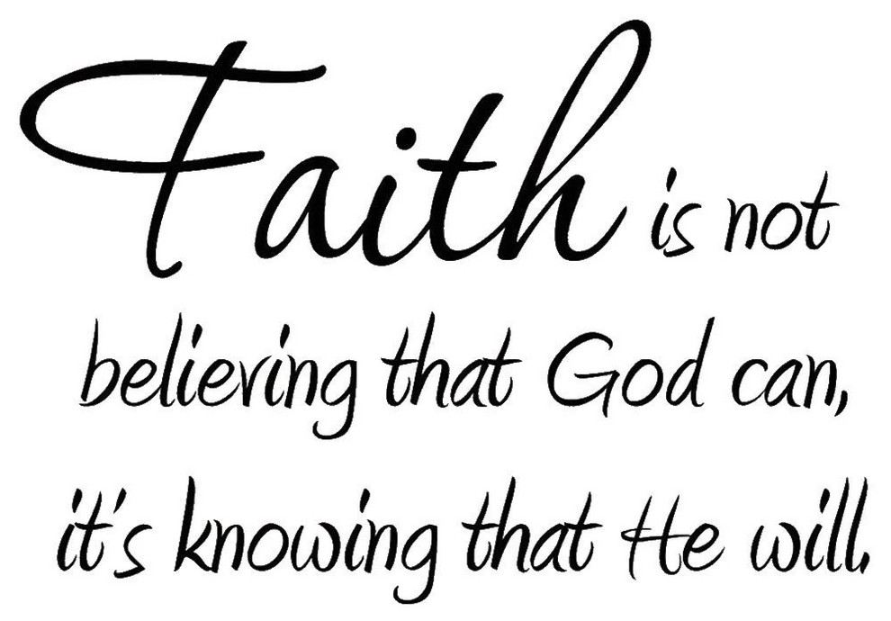 Faith is not only believing that God can it is knowing that He will. Faith is not belief without proof but trust without reservation. Knowing God will do it is the basis of faith.