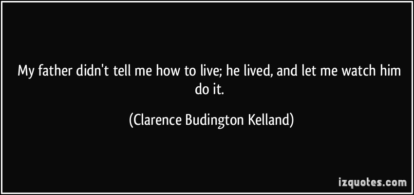 View On Black. He lived and let me watch him do it. Last week you chose a 6 word memoir to sharethis week elaborate. He Lived and let me watch him do it. My father didnt tell me how to live. He didnt tell me how to liveinstead he lived and let me watch him do it. Clarence Budington Kelland s quote about fatherhoodparenting.