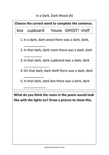 And in the dark dark cupboard there was a dark dark shelf. II I am in deep woods Between the two twilights. In a Dark Dark Wood Traditional Poem Suggested Grades.