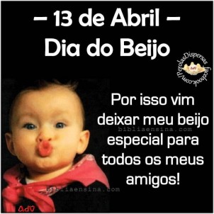 Mais um 13 abril mais um Dia do Beijo. Além de celebrar o amor 13 de Abril é uma ótima desculpa para dar beijinhos na pessoa amada. Eu preciso do seu beijo para deixar de lado minhas preocupações. As mulheres estão no comando. 22out2020 - Explore a pasta Dia do Beijo de Mensagens Com Amor seguida por 438601 pessoas no Pinterest. Este dia é comemorado em todo o mundo no dia 6 de julho. Imagens e gifs de Dia do Beijo com frases para whatsapp.